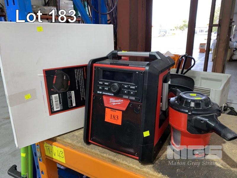 MILWAUKEE CORDLESS VACUUM CLEANER, HAND HELD & M18 RADIO/CHARGING STATION, 240V