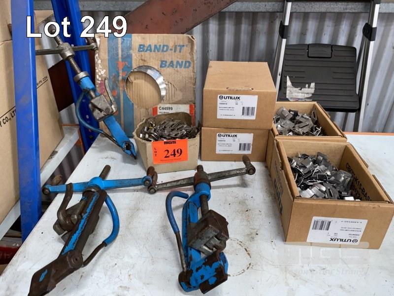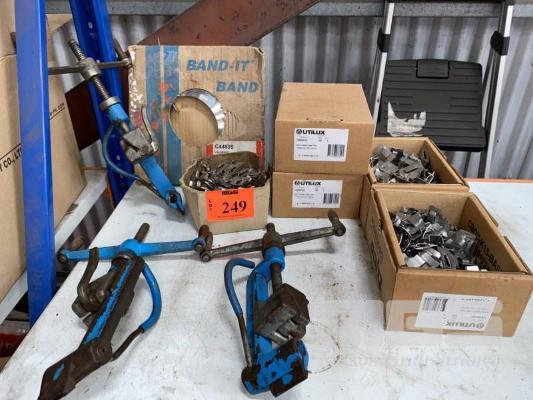 3 x BAND-IT TENSIONING CLAMP TOOLS, STAINLESS STEEL STRAPPING & CLIPS