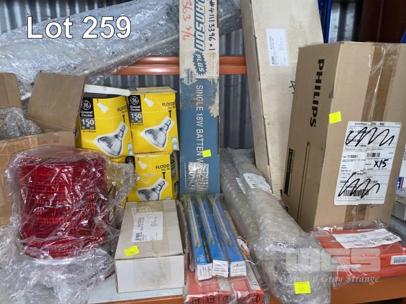 RED STROBE BEACON LIGHT, UHF ALLOY AERIAL, ASSORTED GLOBES, BATTENS, ETC