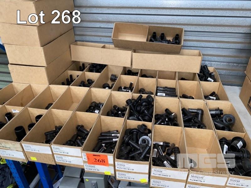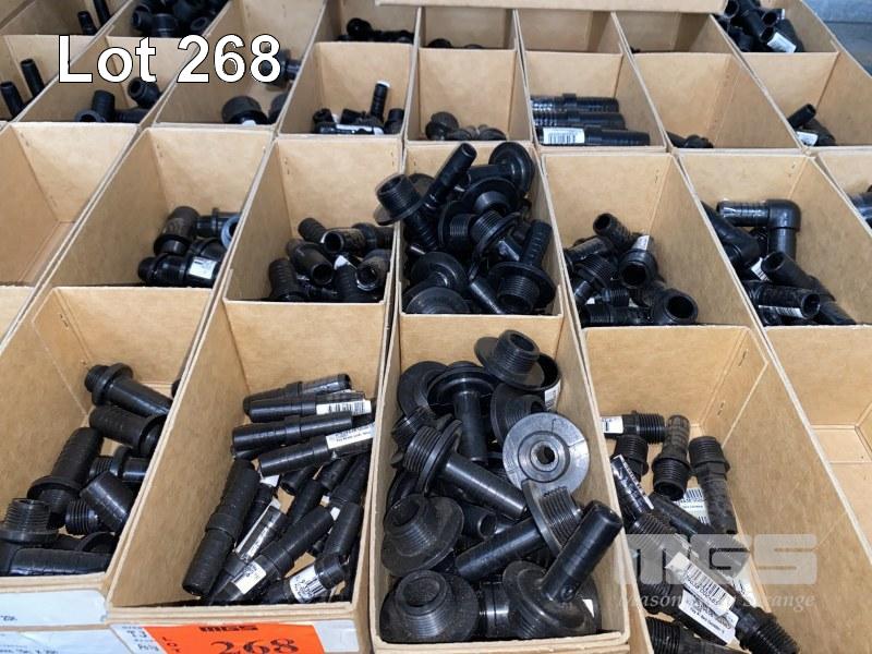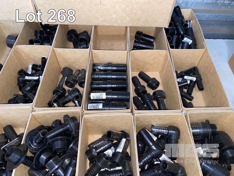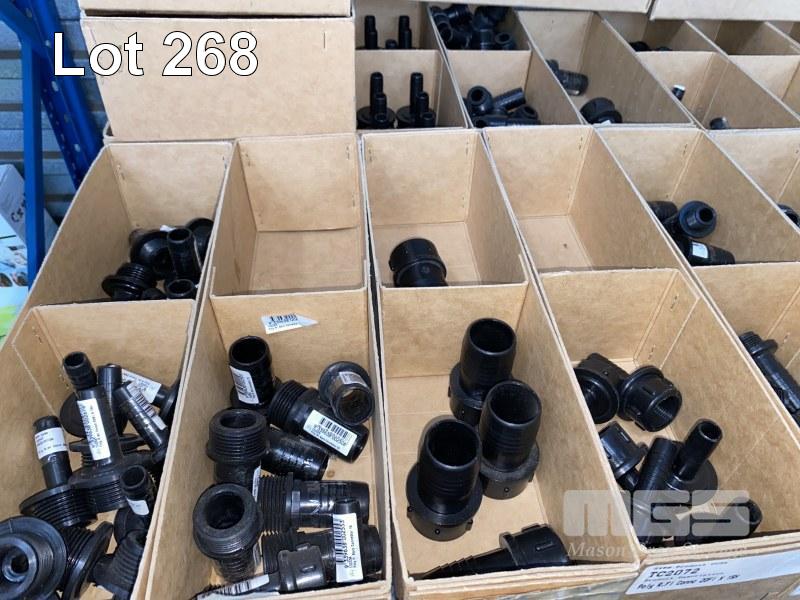 DIESEL/CHEMICAL RESISTANT PIPE FITTINGS, VULTREX, POLYPROPYLENE HOSE FITTINGS INCLUDING THREADED/BARBED JOINERS & CONNECTORS, ELBOWS, TEES, ETC SIZES INC: 15, 20, 25mm IN 20 x CARDBOARD DRAWERS 3 x TOP SHELVES