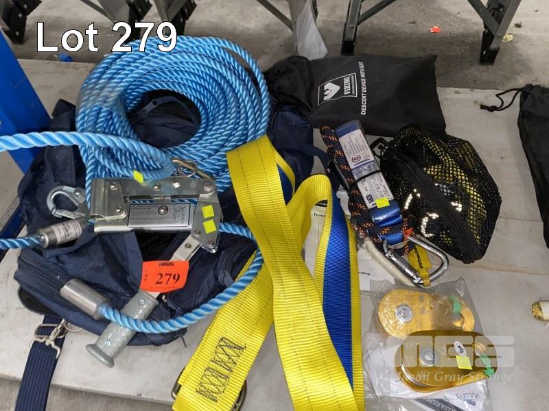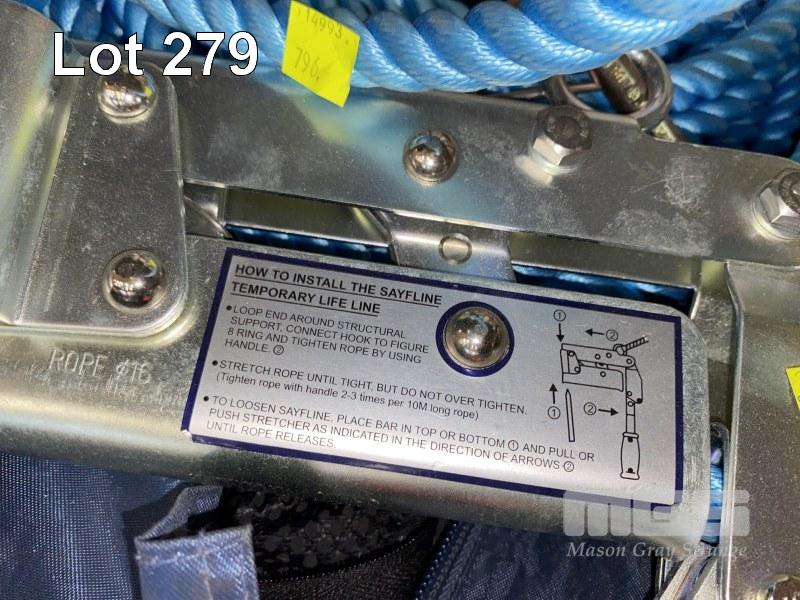 HORIZONTAL SAFETY LINE SYSTEM, SALA SAYFLINE 30m, TEMPORARY ROPE WITH TITAN ROPE TIGHTENER, TYPE: LC4 INCLUDING TIE OFF ADAPTOR, 2m, 2 x SINGLE PULLEYS, ROLL GLISS, 6-22mm, 2 x FALL ARREST SHOCK ABSORBER HARNESS ATTACHMENTS & VIKING DESCENT SEAT