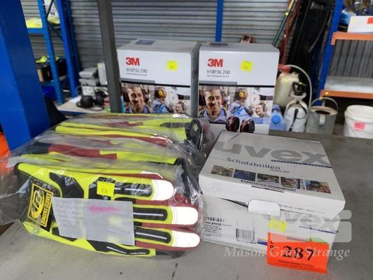 10 x PAIRS RIGGERS GLOVES, CR, R-14, SIZE LARGE, HI-VIS, ARMORED, 5 x PAIRS UVEX SAFETY GLASSES & 2 x PAIRS 3m PELTOR HARD HAT EAR MUFFS