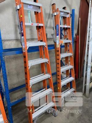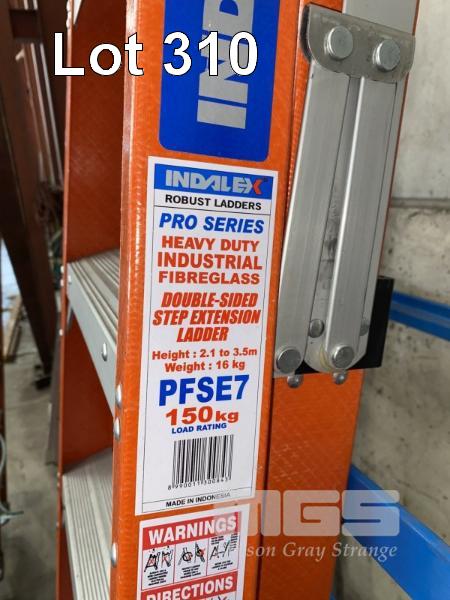 2 x DOUBLE SIDED STEP EXTENSION LADDRERS, FIBREGLASS, INDALEX PRO SERIES, 2.1-3.5m