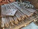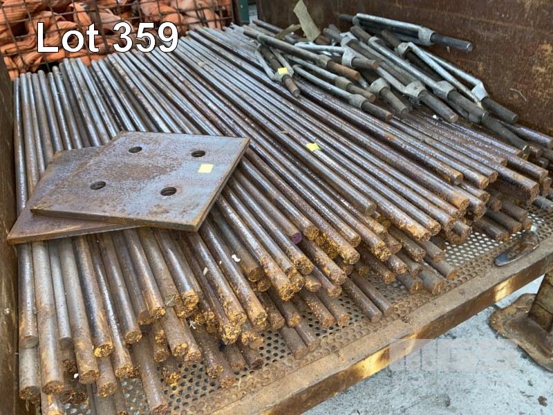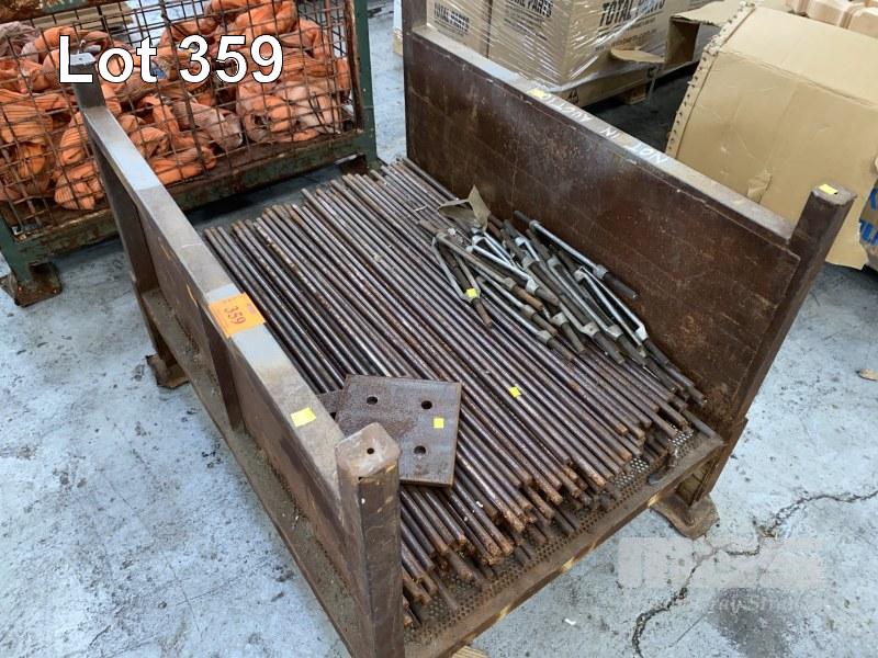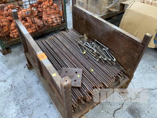 150 (APPROX) x STEEL RODS, 16mm DIA x 1000mm (L) WITH 12 x TURNBUCKLES, 450mm, PLATES, ETC, 1 x STILLAGE (INCLUDES STILLAGE)