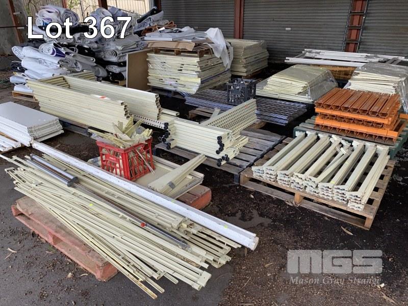 MODULAR STEEL SHELVING, ASSORTED SIZES, INC SUPPORTS, CROSSBEAMS, SHELVES & BACK PANELS,