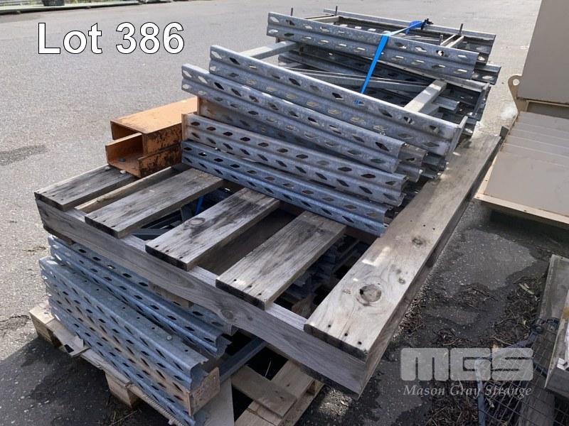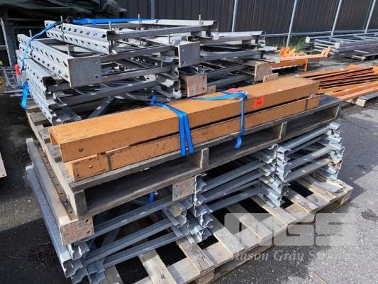 2 x PALLET & 2 x CRATES ASSPRTED PALLET RACKING, UPRIGHT CUT OFFS & BASE PROTECTORS