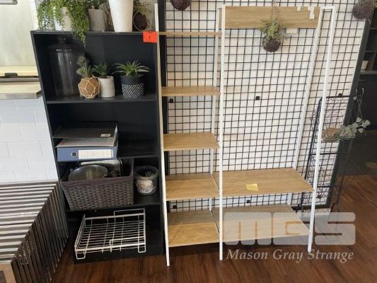 2 x SHELF UNITS, BASKET DISPLAY UNIT & IMITATION PLANTS