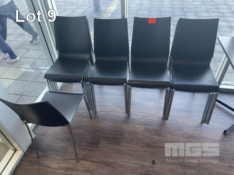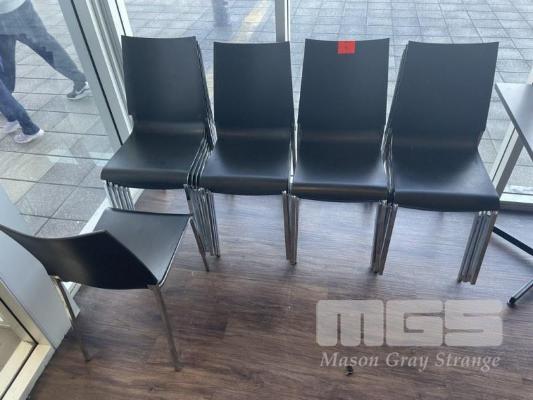 20 x DINING CHAIRS, BLACK MOULDED PLASTIC, CHROME FRAMED, STACKABLE