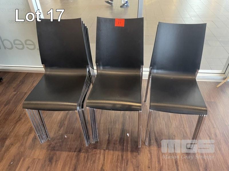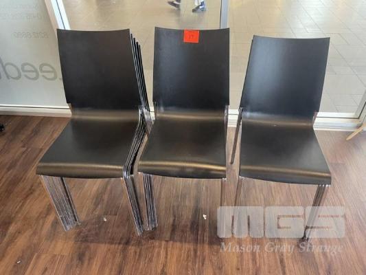 13 x DINING CHAIRS, BLACK MOULDED PLASTIC, CHROME FRAMED, STACKABLE