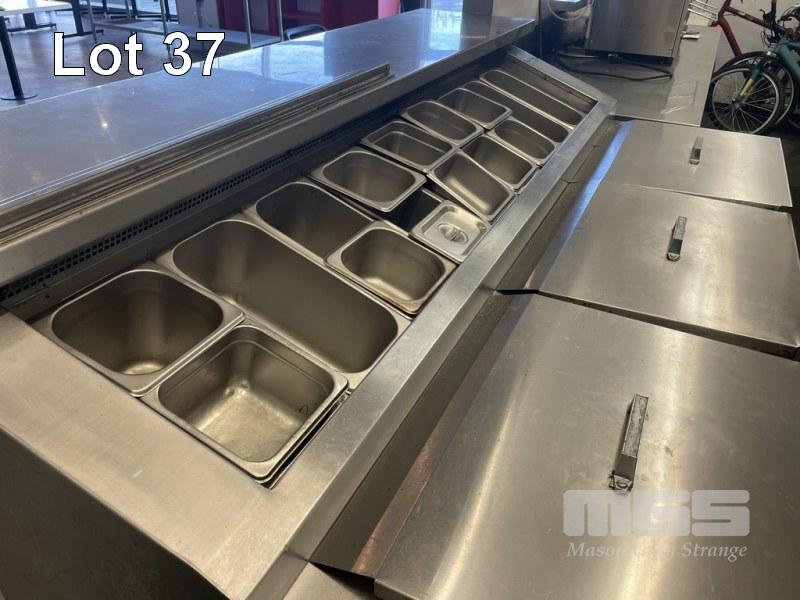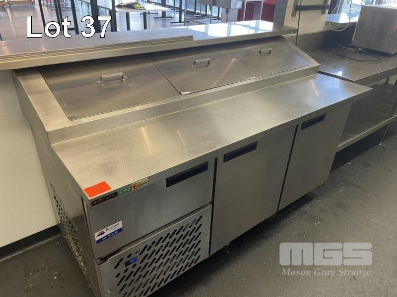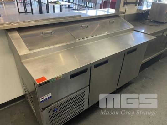 PIZZA PREP FRIDGE, ANVIL AIRE MOD: UBP1800 2 1/2 DOOR TOPPINGS STORAGE STAINLESS STEEL CASED, 240V