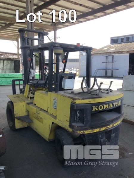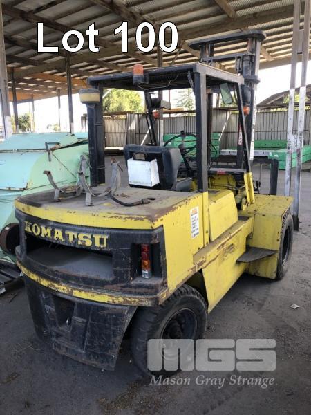 KOMATSU FORKLIFT, MODEL: FG-40-4, CAP: 3,400kg, SERIAL: 130023, MAST HEIGHT: 4.5m, SERVICE WEIGHT, 5,945kg, 9,788hrs, SEE THROUGH 2 STAGE MAST, HEADLIGHTS, DUAL FRONT WHEELS, LPG