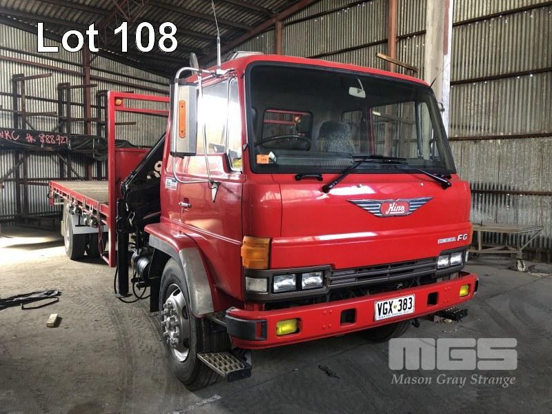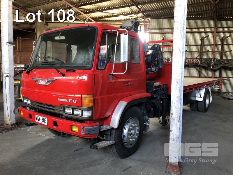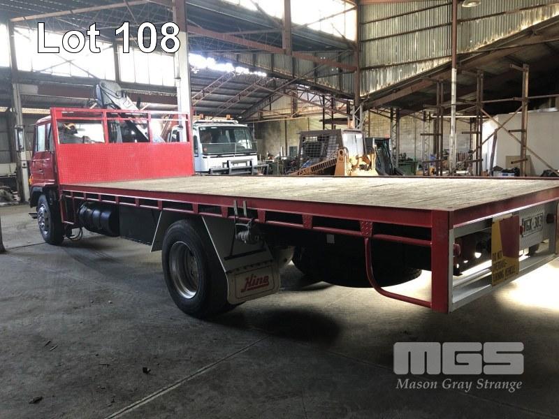HINO ECONO DIESEL TRAY TOP CRANE TRUCK, DOM 1989, 177,000km, MANUAL TRANSMISSION, 2.4 TONNE HIAB CRANE, 6.7 x 2.4m TRAY
