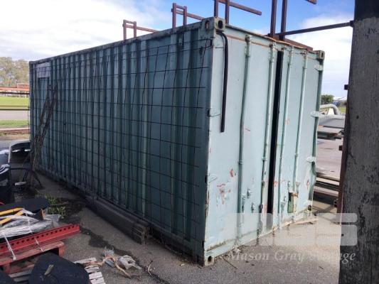 20 FOOT SHIPPING CONTAINER, NOTE: ROOF DAMAGED, FLOOR WATER DAMAGED, PLEASE INSPECT
