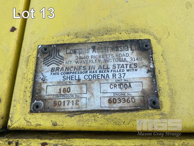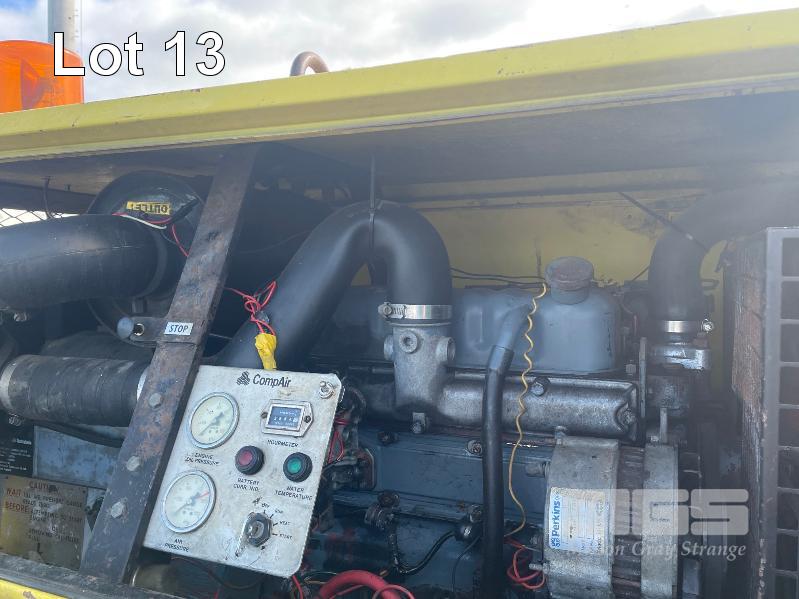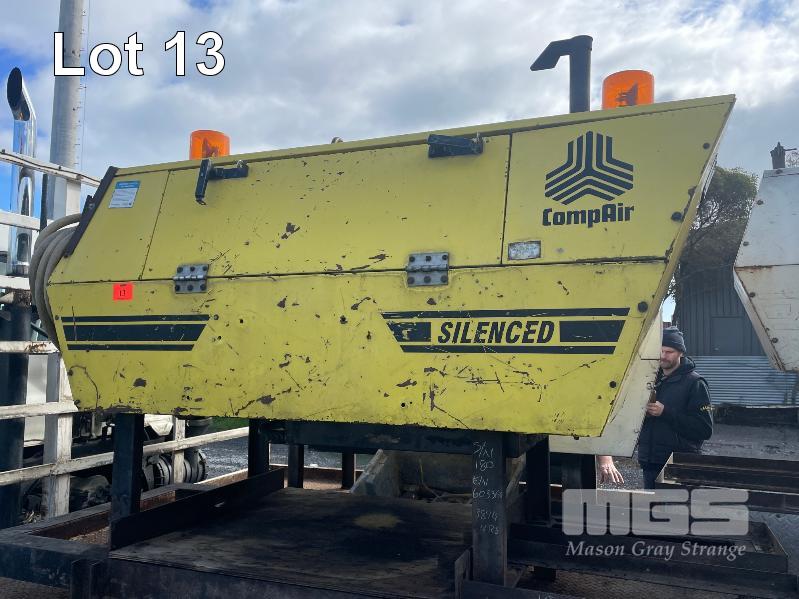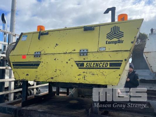 COMP AIR SILENCED AIR COMPRESSOR ON SKID BASE, MODEL: CR100A, SERIAL: 180, ENGINE NO. 603360, 3,894hrs, KEY START, 4 CYLINDER PERKINS DIESEL