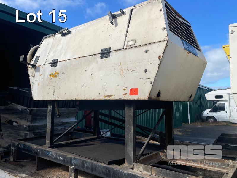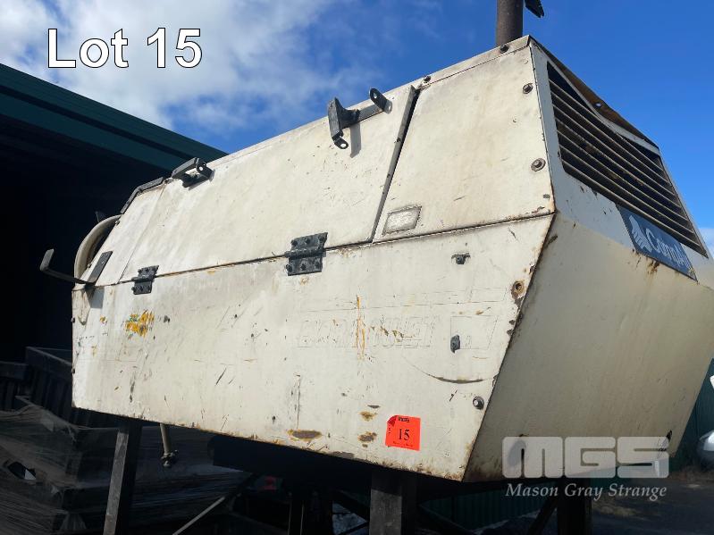 COMP AIR SILENCED AIR COMPRESSOR ON SKID BASE, MODEL: COMPACT75, SERIAL: 2002, ENGINE NO. 634677, 3,845hrs, KEY START, 4 CYLINDER PERKINS DIESEL