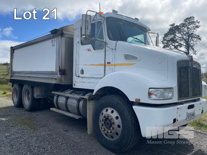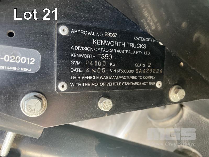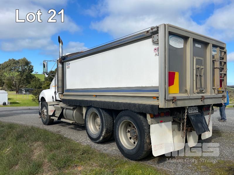KENWORTH TIPPER 6 x 4 TRUCK, MODEL: T350, DOM: 2005, REGO: 5B08MB, VIN: 6F50000005A429224, 955,774km, GVM: 24,100kg, CUMMINS ISM TURBO DIESEL, 18 SPEED, FITTED WITH HERCULES ALLOY TIPPER BODY, WITH GRAIN SHOOT, RING FEEDER, & ALLOY WHEELS