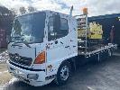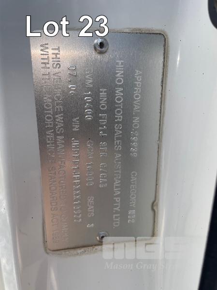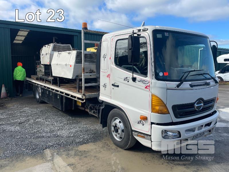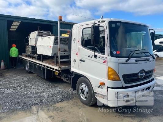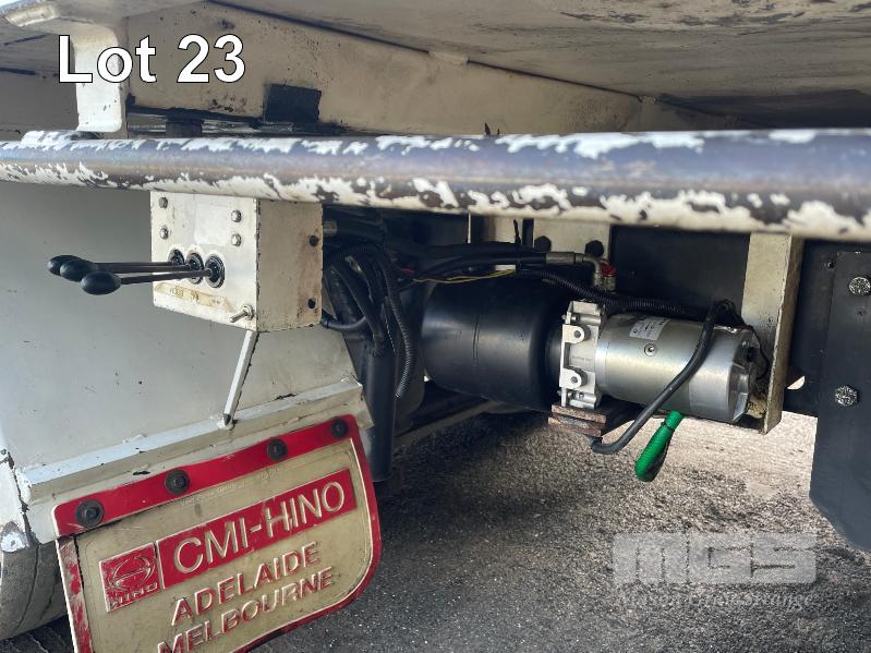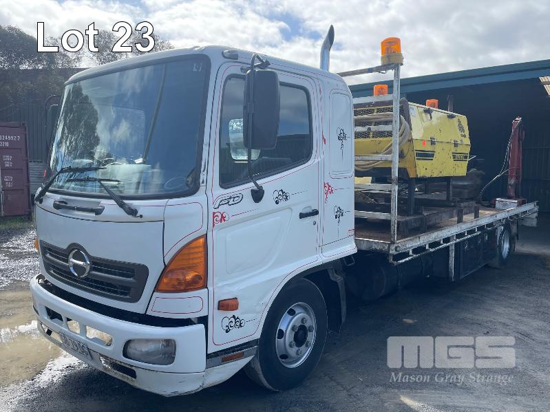 HINO TRAY TOP TRUCK 4 x 2, MODEL: FD1J, DOM: 2006, REGO: SB79DG, VIN: JHDFD1JPXXX10977, 831,550km, LONG WHEEL BASE, AIR ASSISTED BRAKES, 6 x 2.4m TRAY, UNDER MOUNT TOOL BOXES, REAR MOUNT CRANE, CAP: UNKNOWN, HYDRAULIC DRIVE, NOTE: MINOR DOOR DAMAGE PASSENGER SIDE