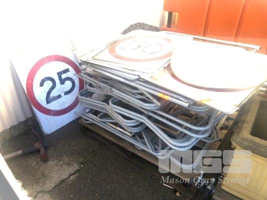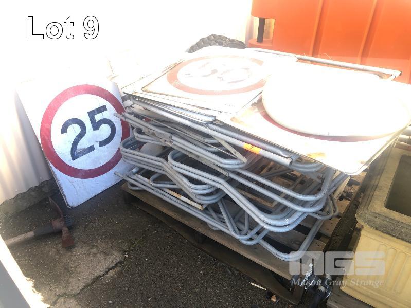 CONTENTS OF PALLET, ASSORTED ROAD SAFETY SIGNS, 12 x FOLD OUT SIGN FRAMES, 20 x ROAD SPEED SIGNS, 25kph & 50kph