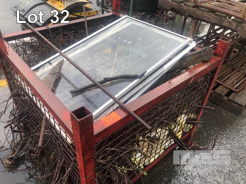 HEAVY DUTY STACKABLE STEEL STILLAGE, 1000 x 1000 x 850mm WITH REO BAR OFF CUTS AND ALUMINIUM WNDOW
