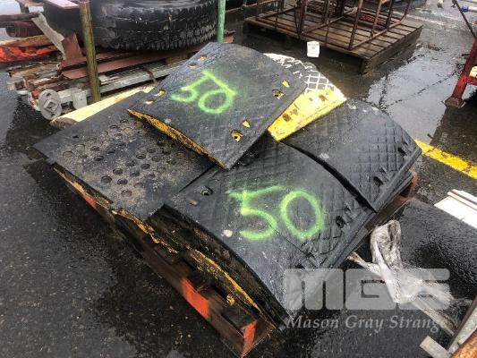 CONTENTS OF PALLET, APPROX 14 x CONNECTABLE RUBBER SPEED BUMP SECTIONS