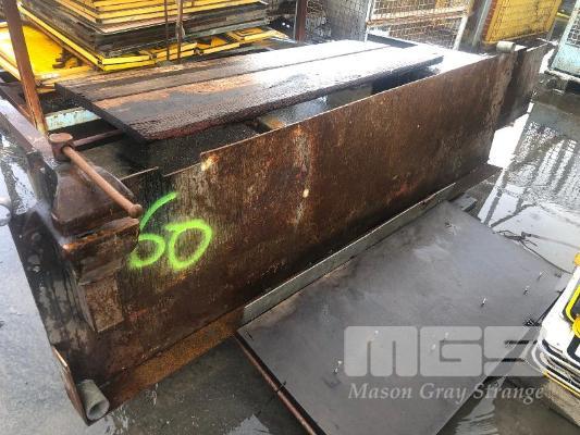 STEEL BENCH 2300 x 600mm WITH DAWN 6' BENCH VICE, PLUS STILLAGE OF REO BAR
