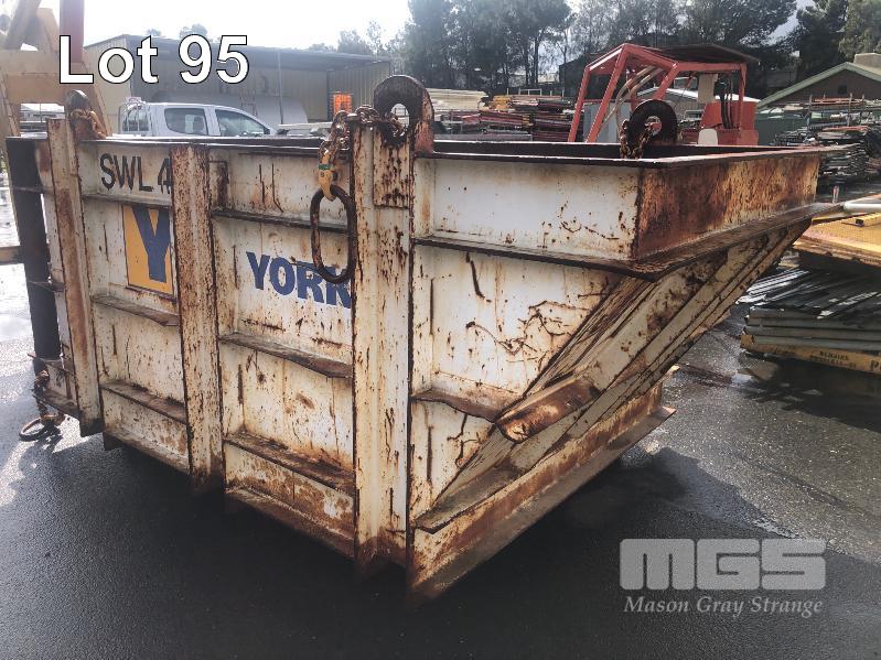 CRANE LIFT WASTE BIN, 4 TONNE SWL, 2600 x 1600mm, WITH LIFTING & TIPPING CHAINS