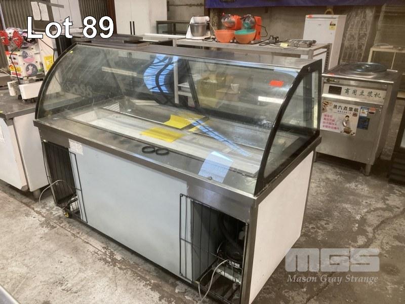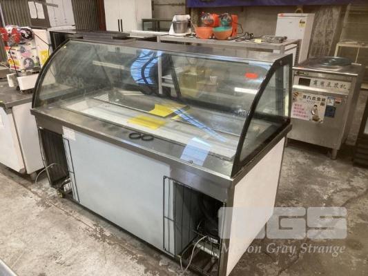 COLD FOOD DISPLAY, 180cm, 2 DOOR, BOW GLASS STAINLESS STEEL CASED, TWIN UNIT, 240V (NOTE: CHINESE IMPORT)