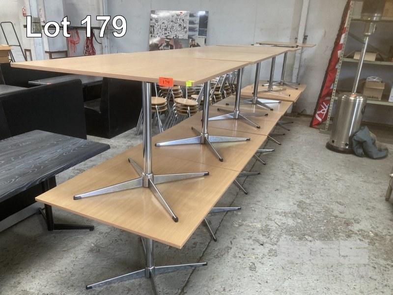 12 x CAFE TABLES, 90 x 90cm, BEECH LAMINATE, CHROME FRAME