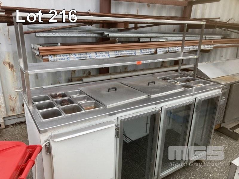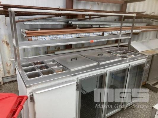 3 DOOR DISPLAY FRIDGE, 213 X 85 CM, 240V W/ 2 TIER OVERSHELF