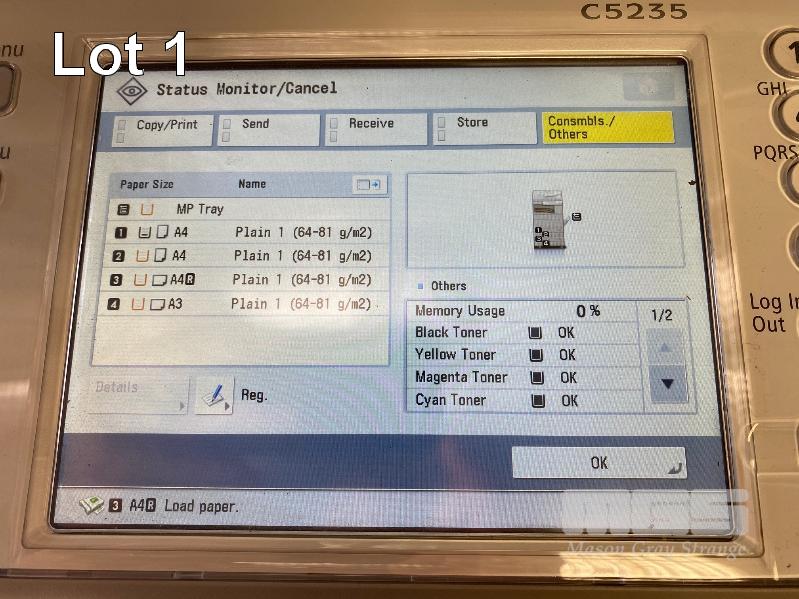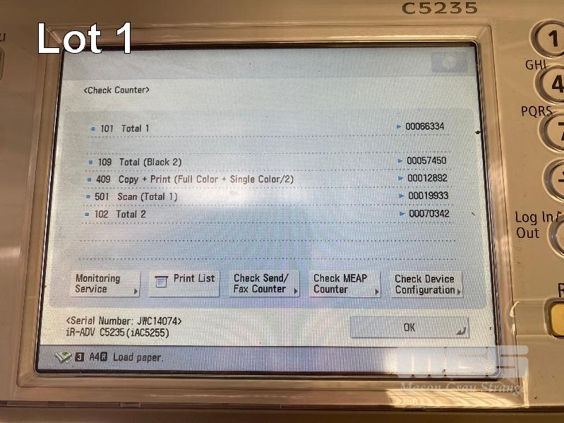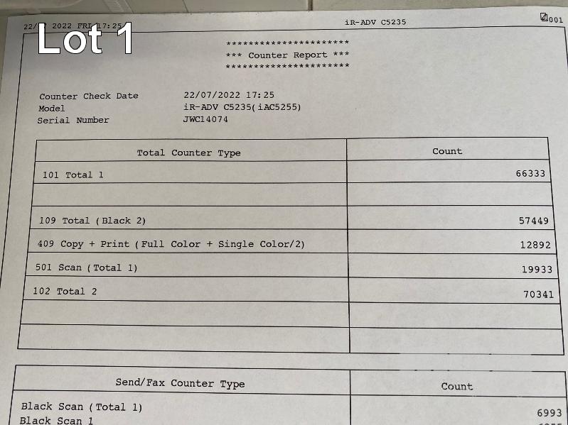 PHOTOCOPIER, CANON imageRUNNER ADVANCE C5235 COLOUR, ADF, PRINTER USB & NETWORK PORTS, MANUAL, 12,892 COLOUR & 57,450 B&W COPIES SHOWING (TEST PAGE ATTACHED) S/N:JWC14074