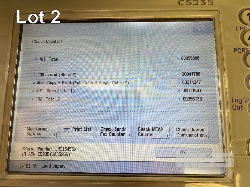 PHOTOCOPIER, CANON imageRUNNER ADVANCE C5235 COLOUR, ADF, PRINTER USB & NETWORK PORTS, 14,347 COLOUR & 41,786 B&W COPIES SHOWING (TEST PAGE ATTACHED) S/N:JWC15455