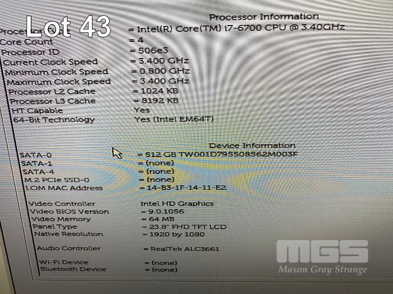 ALL-IN-ONE PC, DELL OPTIPLEX 7450, CORE i7 6700 (6TH GEN) @ 3.4GHz, 16GB DDR4 RAM, 512GB SSD, INBUILT 23.8" FHD WIDESCREEN (1920x1080), INTEL HD VIDEO, WEBCAM, 7 x USB, 1 x USB-C, WINDOWS 10 HOME INSTALLED, KEYBOARD & MOUSE S/N:H1XG2K2