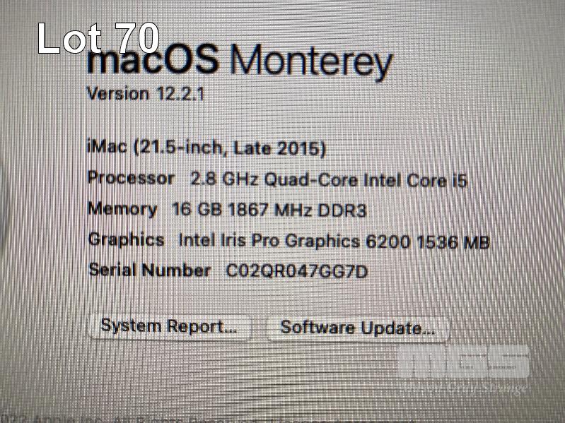 APPLE iMAC (A1418), CORE i5 5575R (5TH GEN) @ 2.8GHz, 16GB DDR3 RAM, 256GB SSD, BUILT-IN 21.5" DISPLAY (1920x1080), INTEL IRIS PRO GRAPHICS 6200, Wi-Fi, MAC OS 12 INSTALLED (NO KEYBOARD, NO MOUSE, NO CABLE) S/N:C02QR047GG7D