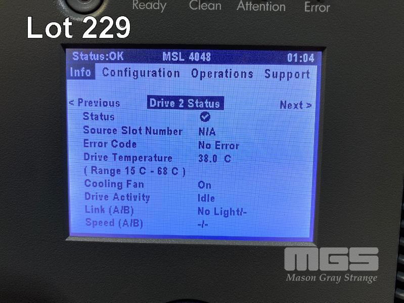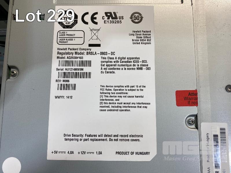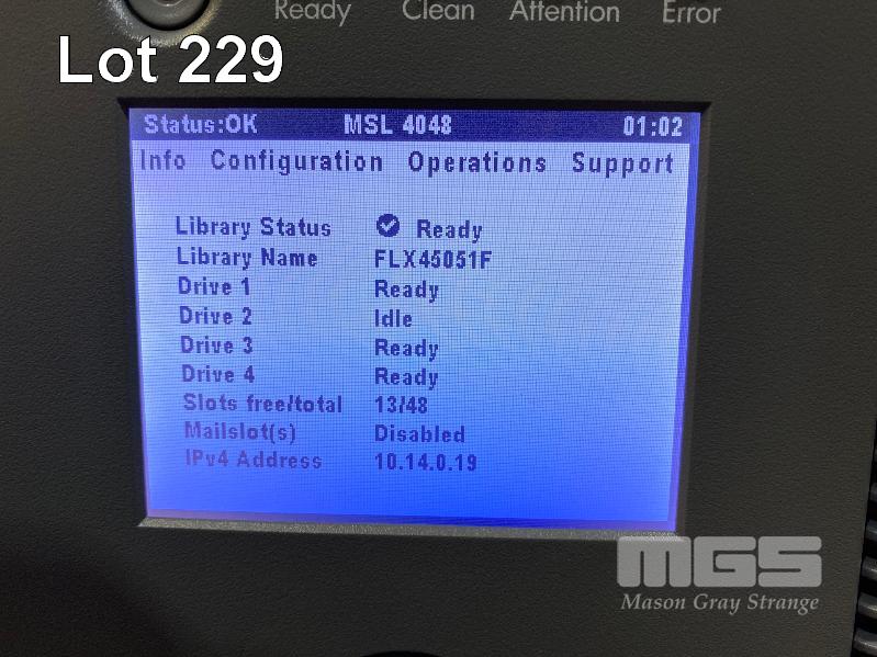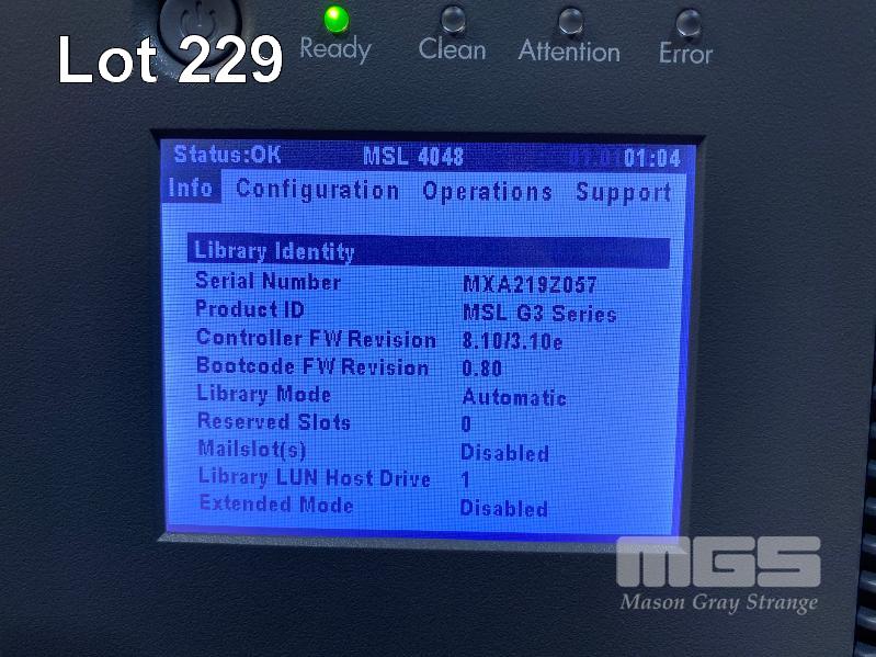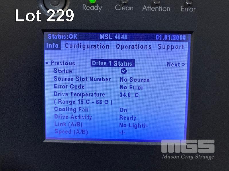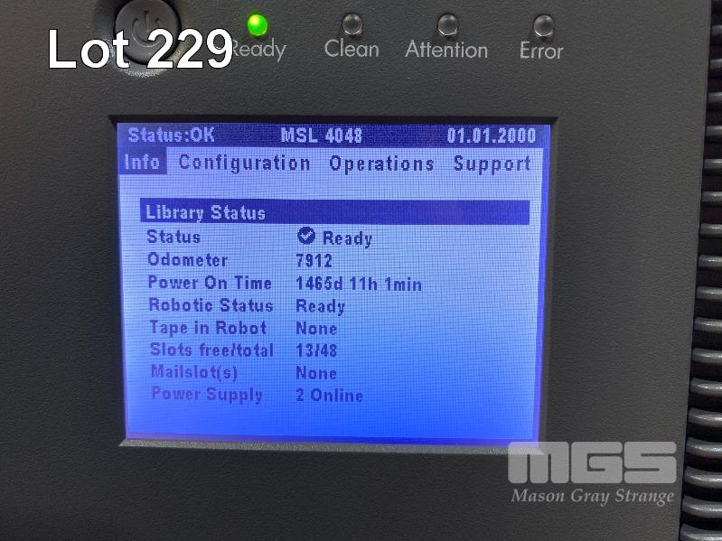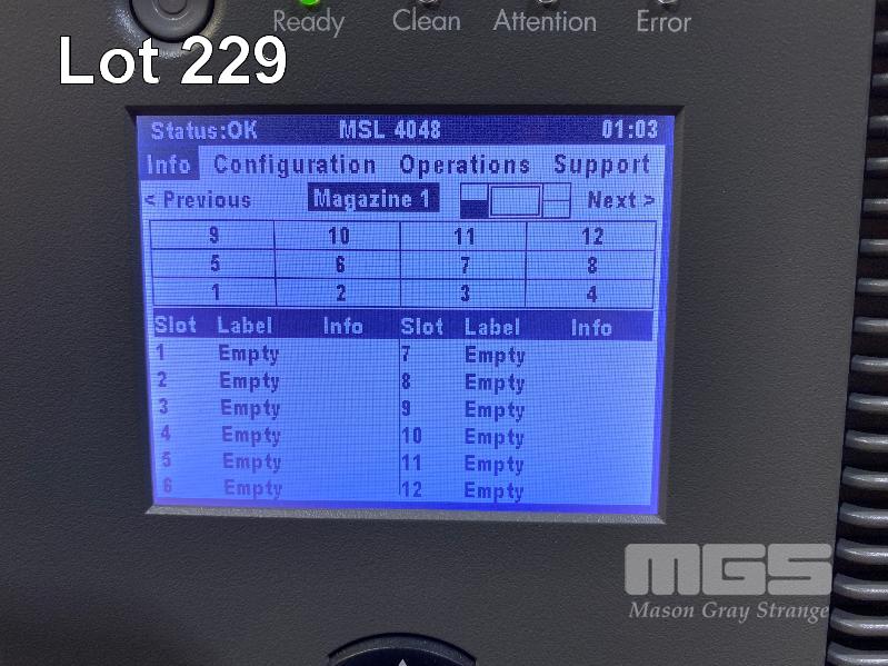 RACKMOUNT TAPE LIBRARY, HP STORAGEWORKS MSL4048, BL543AR, 4 x LTO5 FIBRE CHANNEL TAPE DRIVES, AQ293B#103, 2 x PSU (NO CABLES) S/N:MXA219Z057