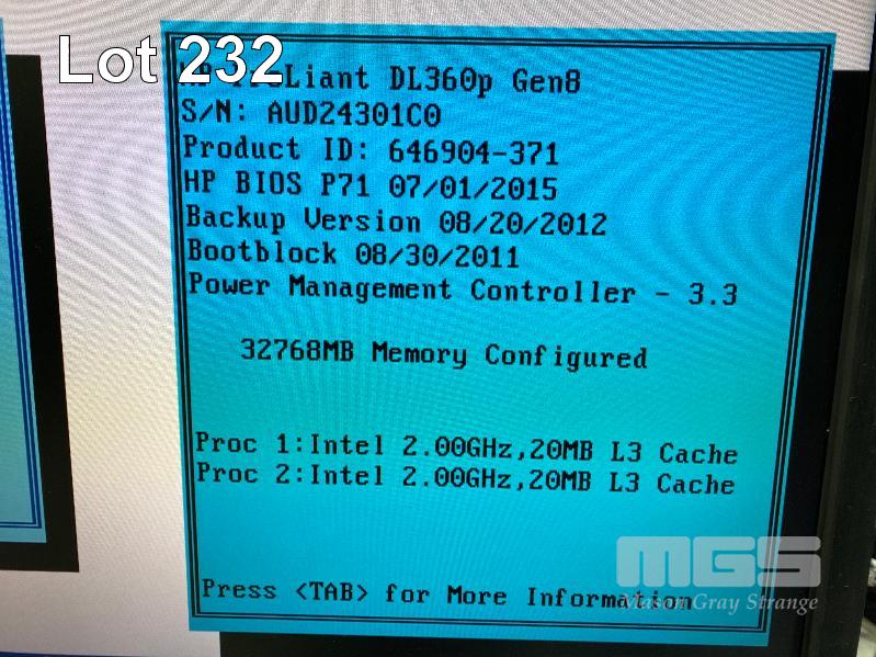 RACKMOUNT SERVER, HP PROLIANT DL360p Gen8, 1U, 2 x XEON E5-2650 @ 2GHz, 32GB ECC DDR3 RAM, 4 x 146GB SAS HDD, 2 x PSU (NO CABLES) S/N:AUD24301C0