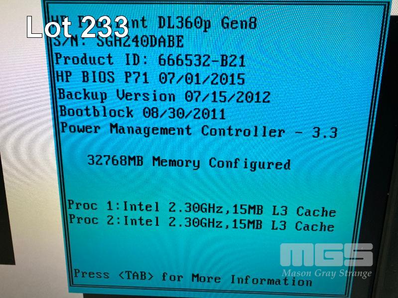 RACKMOUNT SERVER, HP PROLIANT DL360p Gen8, 1U, 2 x XEON E5-2630 @ 2.3GHz, 32GB ECC DDR3 RAM, 8 x 146GB SAS HDD, 2 x PSU (NO CABLES) S/N:SGH240DABE