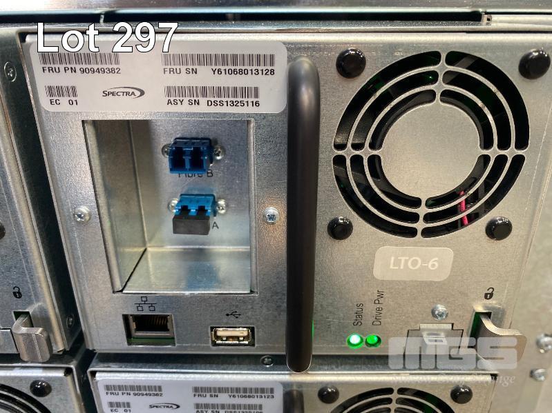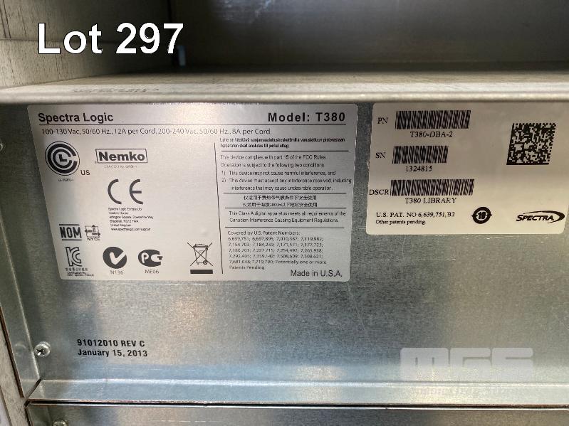 TAPE LIBRARY, SPECTRA LOGIC T380 WITH 4 x LTO-6 FC TAPE DRIVES, 90949382 WITH RAILS (NO CABLES) OVERALL SIZE 124 x 44 x 90cm (NOTE: MISSING CABINET COVERS, LCD DISPLAY FAULTY) S/N:1324815