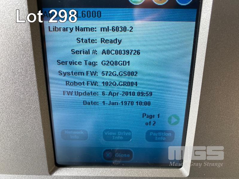 TAPE LIBRARY, DELL POWERVAULT ML6000 WITH 10 x LTO4 FC TAPE DRIVES, 8-00491-01, 6 x PSU WITH RAILS (NO CABLES) OVERALL SIZE 102 x 44 x 76cm S/N:G2Q8GD1