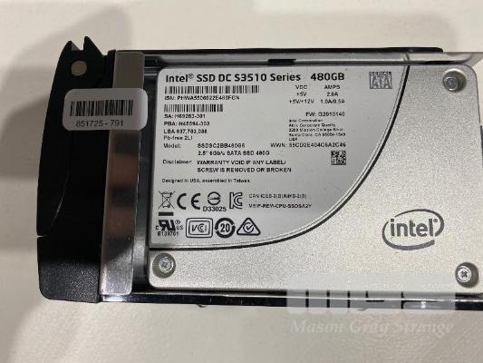 4 x INTEL 480GB SOLID STATE DRIVES, DC S3510 SERIES, SATA, 2.5" WITH CADDIES
