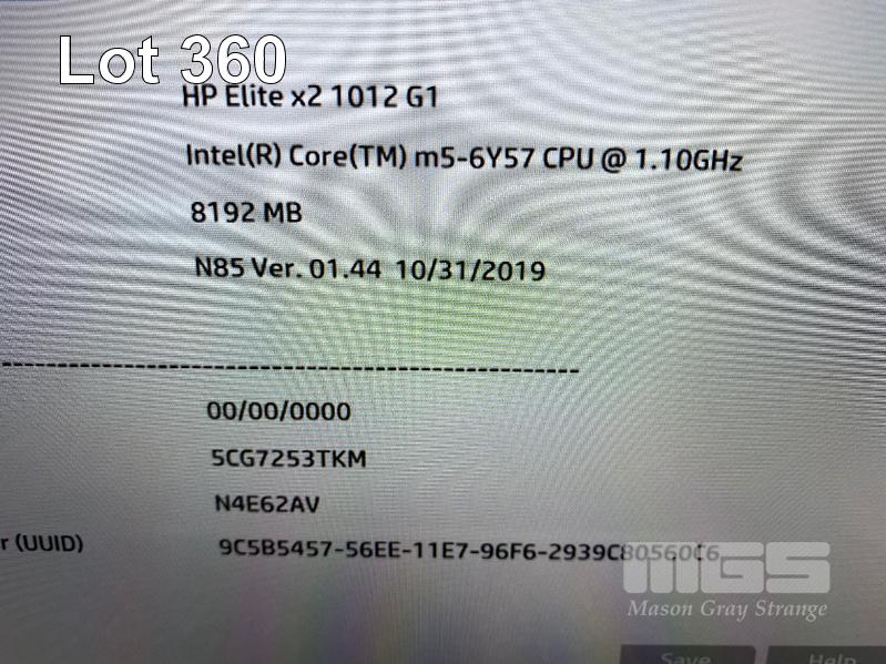 TABLET PC, HP ELITE x2 1012 G1 (N4E62AV), CORE m5-6Y57 @ 1.1GHz, 8GB RAM, 256GB SSD, 12" TOUCHSCREEN (1920x1080), INTEL HD VIDEO, Wi-Fi, CELLULAR, WINDOWS 10 PRO INSTALLED, KEYBOARD, STYLUS & (GENERIC) USB-C POWER SUPPLY S/N:5CG7253TKM