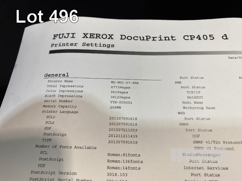 PRINTER, FUJI XEROX DOCUPRINT CP405 d COLOUR LASER, USB, NETWORK, 961 COLOUR & 3,812 B&W PAGES (TEST PAGE ATTACHED)