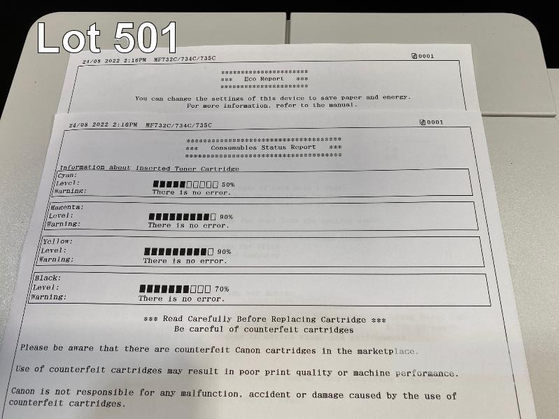 PRINTER, CANON imageCLASS MF735Cx MFC COLOUR LASER, ADF, WIRELESS, USB, NETWORK, FAX, 13,084 PAGES (TEST PAGE ATTACHED) S/N:WTJ16442