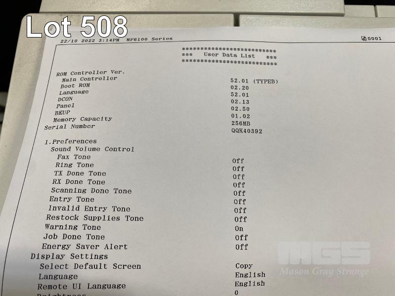 PRINTER, CANON imageCLASS MF6180dw MFC LASER, ADF, WIRELESS, USB, NETWORK, FAX, 21,308 PAGES (TEST PAGE ATTACHED) S/N:QQK40392