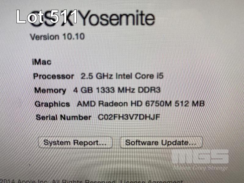 APPLE iMAC (A1311), CORE i5 2400S (2ND GEN) @ 2.5GHz, 4GB DDR3 RAM, 500GB SATA HDD, DVD-RW, BUILT-IN 21.5" DISPLAY (1920x1080), Wi-Fi, MAC OS 10.10 INSTALLED (NO KEYBOARD, NO MOUSE, NO CABLE) S/N:C02FH3V7DHJF