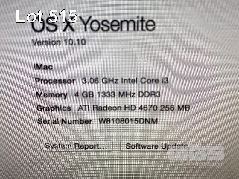 APPLE iMAC (A1311), CORE i3 540 @ 3.06GHz, 4GB DDR3 RAM, 500GB SATA HDD, DVD-RW, BUILT-IN 21.5" DISPLAY (1920x1080), Wi-Fi, MAC OS 10.10 INSTALLED (NO KEYBOARD, NO MOUSE, NO CABLE) S/N:W8108015DNM