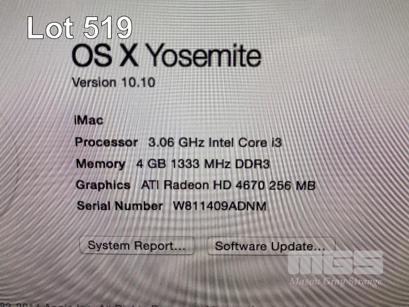 APPLE iMAC (A1311), CORE i3 540 @ 3.06GHz, 4GB DDR3 RAM, 500GB SATA HDD, DVD-RW, BUILT-IN 21.5" DISPLAY (1920x1080), Wi-Fi, MAC OS 10.10 INSTALLED (NO KEYBOARD, NO MOUSE, NO CABLE) S/N:W811409ADNM