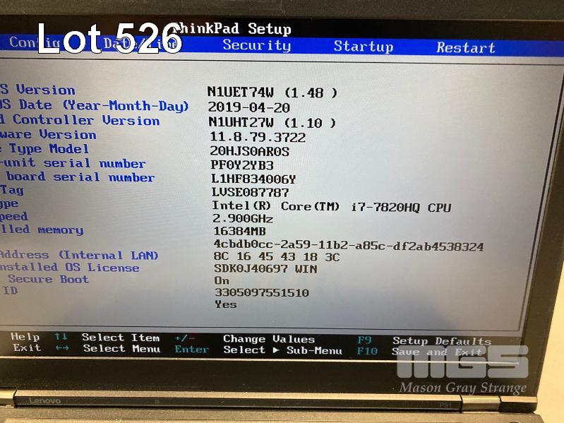 LAPTOP, LENOVO THINKPAD P51 MOBILE WORKSTATION, TYPE 20HJ, CORE i7 7820HQ (7TH GEN) @ 2.9GHz, 16GB DDR4 RAM, 512GB NVMe M.2 SSD, 15.6" WIDESCREEN (1920x1080), 4GB NVIDIA QUADRO M2200 VIDEO, Wi-Fi, BLUETOOTH, WINDOWS 10 PRO INSTALLED & POWER SUPPLY (NOTE: MARKS ON SCREEN) S/N:PF0Y2YB3