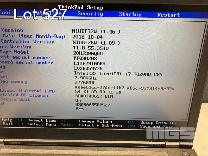 LAPTOP, LENOVO THINKPAD P51 MOBILE WORKSTATION, TYPE 20HJ, CORE i7 7820HQ (7TH GEN) @ 2.9GHz, 32GB DDR4 RAM, 512GB NVMe M.2 SSD, 15.6" WIDESCREEN (1920x1080), 4GB NVIDIA QUADRO M2200 VIDEO, Wi-Fi, BLUETOOTH, WINDOWS 10 PRO INSTALLED & POWER SUPPLY (NOTE: SMALL CRACK LINE ON CASING, MARKS ONS SCREEN) S/N:PF0XH2HS