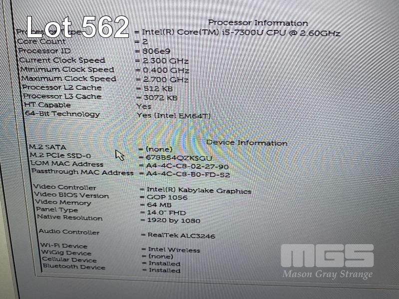 LAPTOP, DELL LATITUDE 7480, CORE i5 7300U (7TH GEN) @ 2.6GHz, 8GB DDR4 RAM, 256GB NVMe M.2 SSD, 14" WIDESCREEN (1920x1080), INTEL KABYLAKE GRAPHICS, CELLULAR, Wi-Fi, BLUETOOTH, WINDOWS 10 PRO INSTALLED & POWER SUPPLY (NOTE: NO BATTERY) S/N:49WW7H2