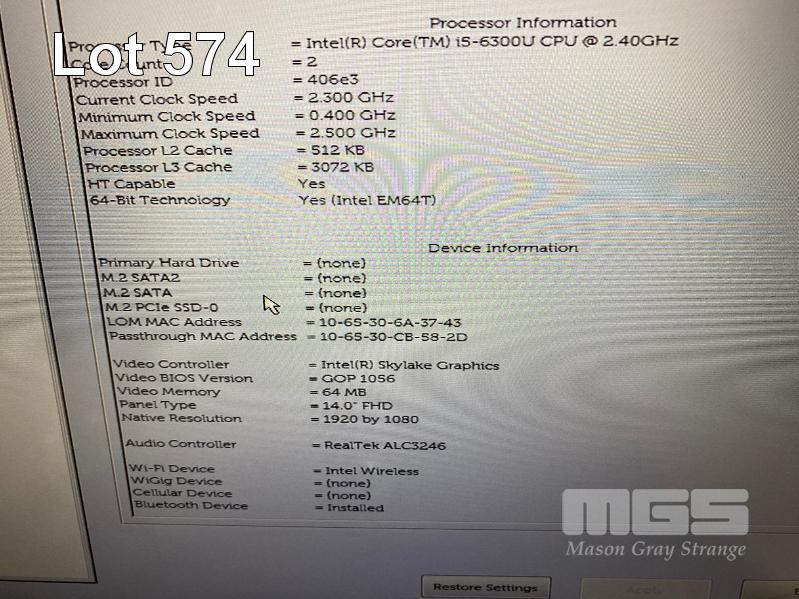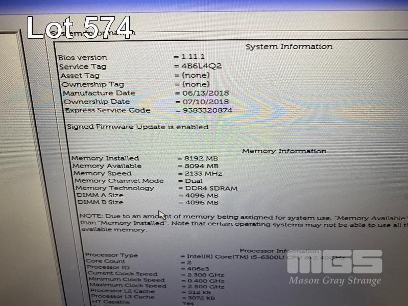 LAPTOP, DELL LATITUDE 5480, CORE i5 6300U (6TH GEN) @ 2.4GHz, 8GB DDR4 RAM, NO HDD, 14" WIDESCREEN (NO POWER SUPPLY) (NOTE: NO BATTERY, WHITE SPOT SCREEN BLEMISHES, MARKS ON SCREEN, MISSING "CTRL" KEY) S/N:4B6L4Q2